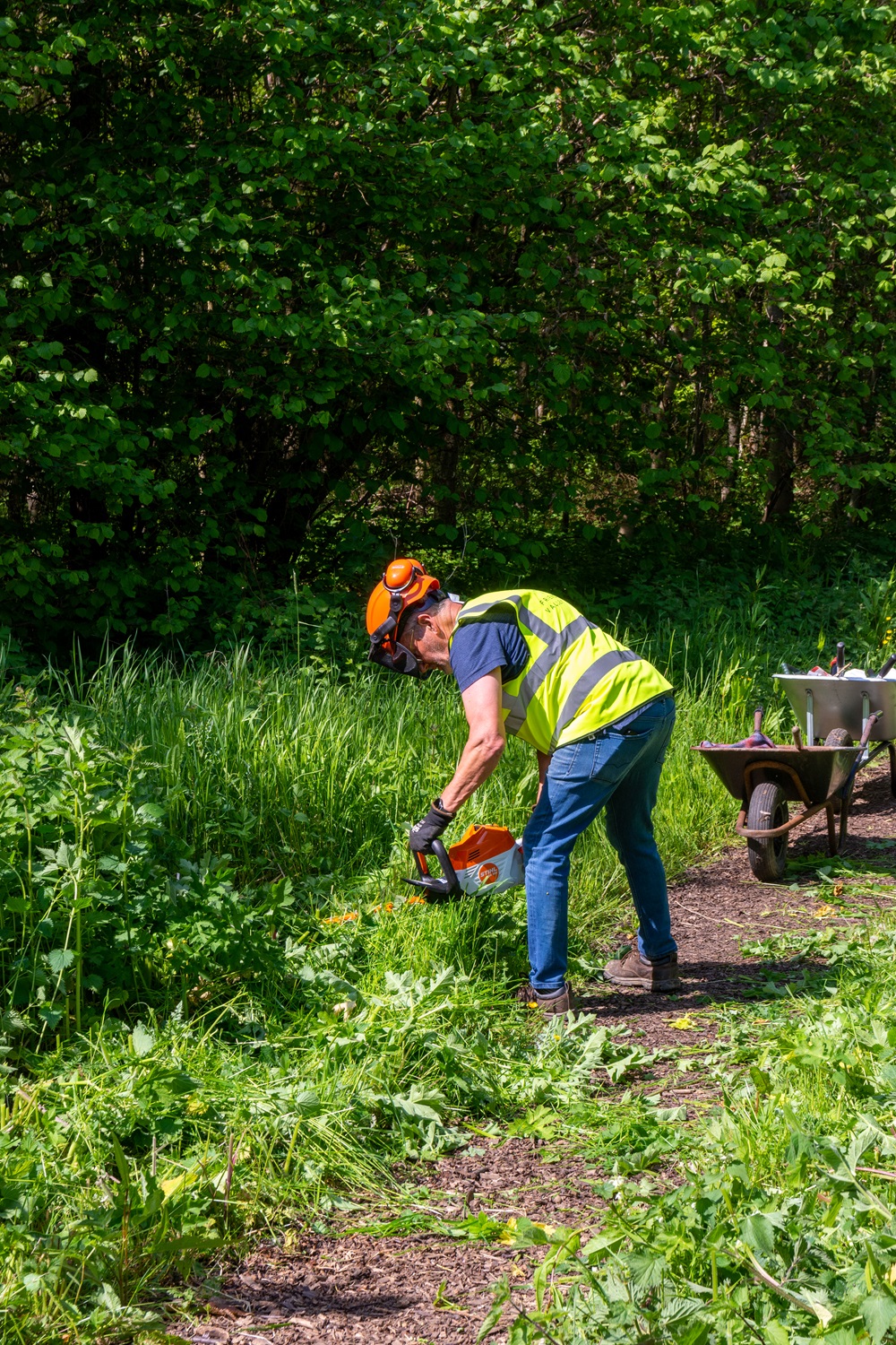 Our first task was to open the pathways, which had become very overgrown, making access difficult. This made a difference to the main path, running through Valley Park immediately.