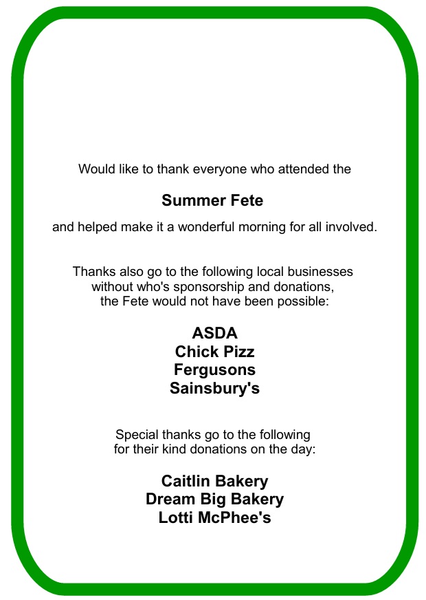 A quick thank you to all of those that could attend our recent summer fete.