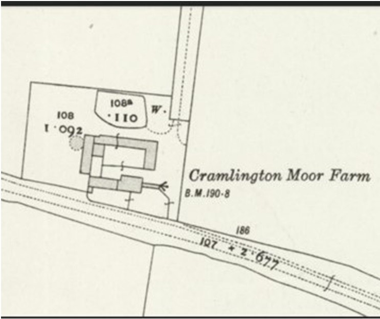 It was situated on the southern edge of Cramlington on uncultivated wasteland before it was farmed. The farmhouse stood next to what was then a subsidiary road connecting Newcastle and Bedlington and running Dam Dykes and Arcot Hall. This road is now called the A1171.